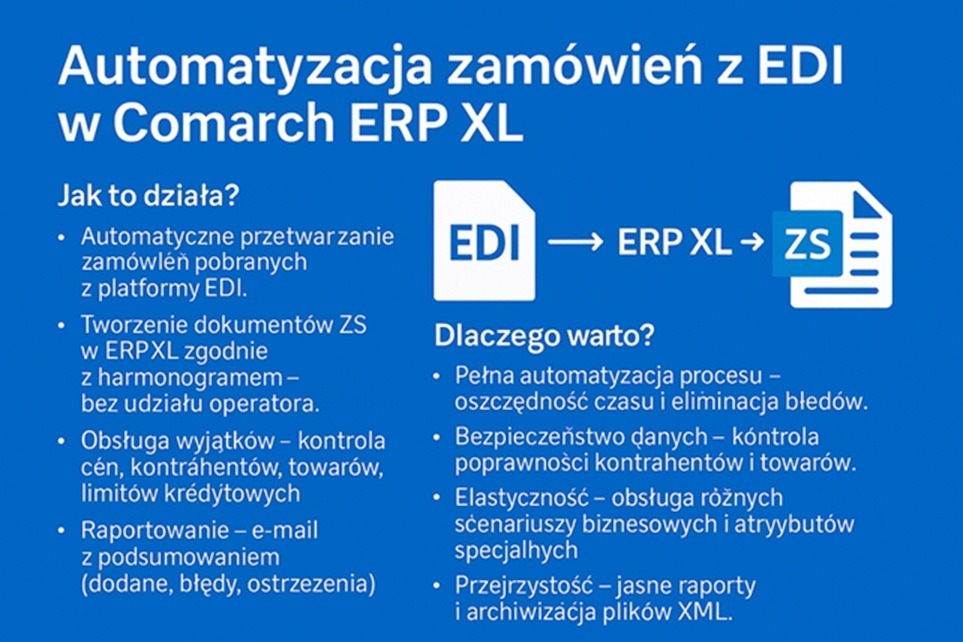 • Tworzenie dokumentów ZS w ERPXL zgodnie z harmonogramem – bez udziału operatora.